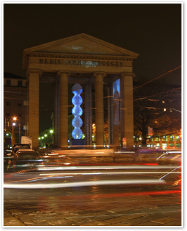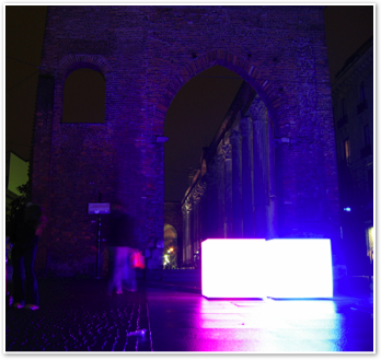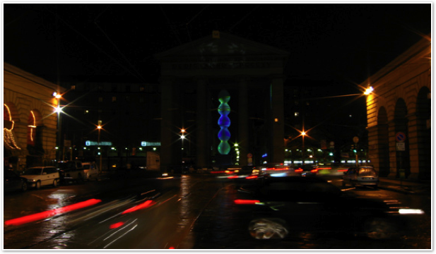 Heavy Light, 10 light installations around Milan, curated by Interni magazine. In the pictures “Due: Luci dallo spazio”, Colonne di San lorenzo and “The gate of time” by Paul Friedlander Piazza 24 maggio.