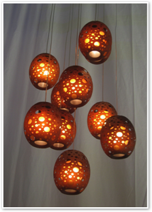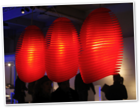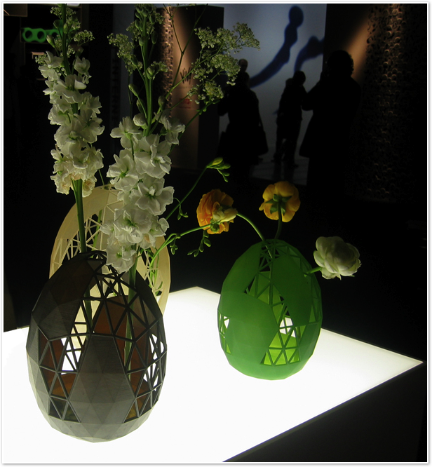 On top “Polivase”, design by Dan Yeffet “Jelly Lab”, and from left to right “Palea” by Dan Yeffet, “open-cube” by Jiri Evenhuis and “minishakes” by Arik Levy. All those lamps are produced by means of the Selective Laser sintering process.