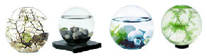 Mini habitat for pets and plants When it comes to pets, a normal thought is all the fuss and cleaning they bring; but with Globus ecosystems, there is no need to feed, clean or change the water, just what busy people with no space need. Ants, shrimps, snails, crustacean, and small water-borne animals, not the most "affectionate" pets, but living creatures to take care of, and learn a lot about. In fact behind every product there is a lot of research, even Nasa experiments, realised during space flights. Plants are also available. |